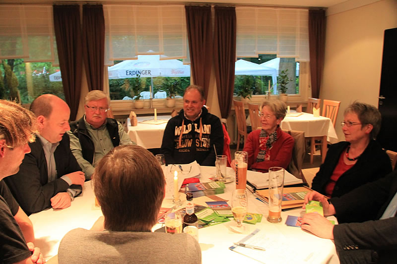 Am Donnerstagabend trafen sich die Mitglieder von Bündnis 90/Die GRÜNEN in der Gaststätte ‚Schwarze Katz‘ in St. Arnold. Zu Gast war an diesem Abend auch Jörg Thiemann, Mitinitiator und Geschäftsführer des Bürgerwindparks Hollich sowie Mitglied des Organisationsteam des „Bürgerwindpark St. Arnold“. Thiemann informierte über den Stand der Potentialflächenanalyse und der Planungen zur Umsetzung des Bürgerwindparks. Ein wesentliches Zwischenergebnis ist, dass die Zone in St. Arnold in ihrem ursprünglich definiert Rahmen bleibt. Hier kann also der erste Bürgerwindpark der Region, der sich an den Leitlinien des Kreises Steinfurt orientiert, aufgebaut werden. Dazu zählen alle harten und weichen Kriterien: Abstand zu Wohnbebauung, Abschaltungen der Anlagen bei möglichem Schattenwurf, deutlich reduzierte Schall-Emissionen der Windanlagen, aber insbesondere auch Windenergie in Bürgerhand.