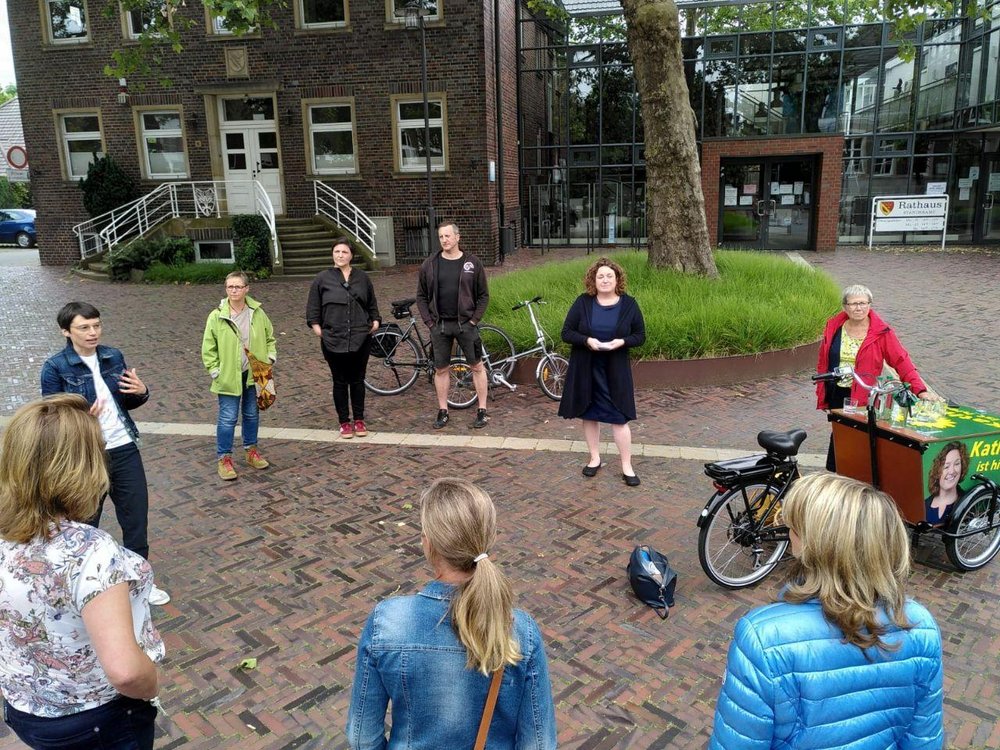 Am Montagabend hat Kathrin Horre, Kandidatin für das Amt der Bürgermeisterin, Vertreter*innen der örtlichen Kindertagesstätten zu einer „Open-Air-Diskussion“ auf den Rathaus-Vorplatz eingeladen. „Ich will heute zuhören – wie geht es in den Einrichtungen nach den ersten Wochen der Öffnung unter den Beschränkungen der Corona-Pandemie? Wie geht es den Kindern und Eltern aus Sicht der KiTas? Wie kann es im neuen Kindergartenjahr weitergehen und was kann die Kommune tun?“