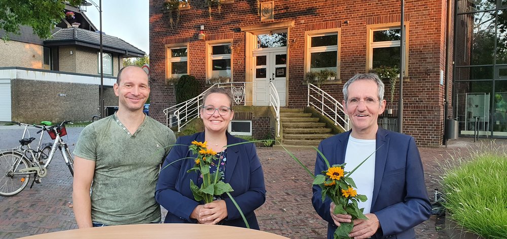 Das Wetter spielte mit – keine Selbstverständlichkeit in diesem Sommer – und knapp 30 Leute kamen in der letzten Woche auf den Rathausplatz zum „Klimadialog“ mit Alexandra Schoo, der Bundestagskandidatin der GRÜNEN. Henrik Selent hatte an diesem Abend seinen ersten Auftritt als Sprecher der GRÜNEN in Neuenkirchen und moderierte den Dialog.