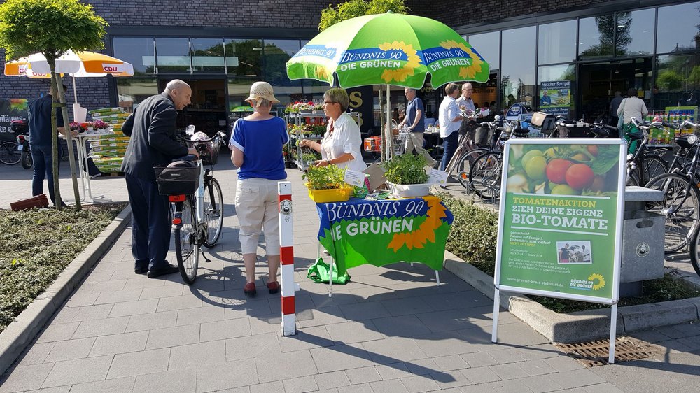 Der GRÜNE Ortsverband Neuenkirchen hat im Mai 150 selbstgezogene Bio-Tomatenpflanzen gegen eine kleine Spende an die Menschen in Neuenkirchen verteilt. Insgesamt haben Grüne in 13 Orten im Kreis Steinfurt insgesamt 2500 Pflanzen auf diesem Weg weitergegeben.