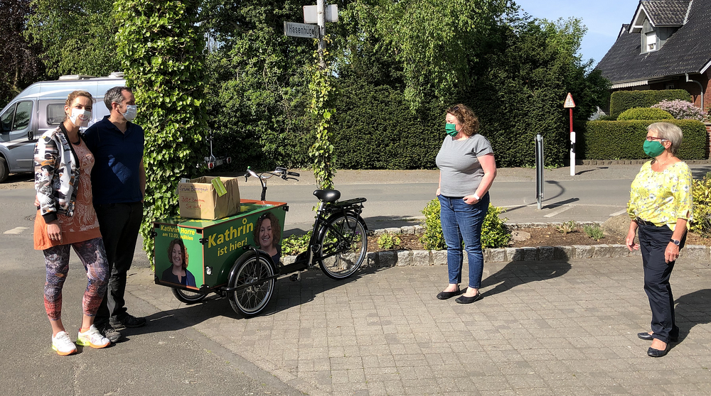 Am vergangenen Wochenende haben auch die GRÜNEN aus Neuenkirchen mit ihrer Bürgermeisterkandidatin Kathrin Horre anläßlich des Muttertages den Straßenwahlkampf eingeläutet. "Nachdem all die Lockerungen angekündigt wurden und der Kommunalwahltermin offensichtlich nicht verschoben wird, wollen und müssen wir die Zeit nutzen", erklärt Ellen Pfennig, Sprecherin der GRÜNEN Ratsfraktion. Verteilt wurden Karten mit Corona-Grüßen mit einer Saatgutmischung für bienenfreundliche Wildblumen. "Ein kleiner Gruß, ein großes Danke - für den Zusammenhalt in diesen schwierigen Zeiten, deren Hauptlast insbesondere die Mütter tragen", betont Kathrin Horre.