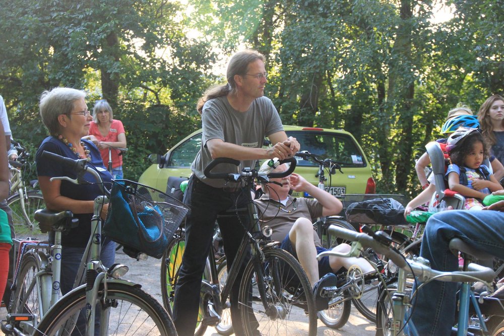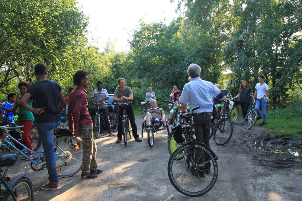 Am vergangenen Samstag sind die Grünen aus Neuenkirchen wieder mit dem Rad unterwegs gewesen. Diesmal hatten sie mit dem Landratskandidaten Hermann Stubbe einen prominenten Gast dabei. Vom Bioland-Gemüsehof Dietmar Weßling ging es gemeinsam mit einigen Flüchtlingen aus Eritrea und Ghana los Richtung St. Arnold. Stephan Deupmann, Sprecher der Grünen Neuenkirchen, hat eine Route rund um und durch das schöne Dorf ausgewählt. Themenschwerpunkt waren hierbei die Ergebnisse des Dorfentwicklungskonzeptes (DEK) und der Stand der Umsetzung. So ging es entlang der Bahntrasse zum alten Bahnhof St. Arnold, hindurch zwischen den Seen und zur Skateranlage am Sepp-Herberger-Stadion. Auch ein Stopp an den Ausbauflächen für den Bürgerwindpark durfte nicht fehlen. Hermann Stubbe war begeistert, welche Ideen durch Partizipation der Bürger entwickelt wurden. Stephan Deupmann und Ellen Pfennig betonten an diesem Punkt, dass nun auch eine zügige Realisierung der Ideen stattfinden muss. Abschließend wurde im Garten von Dietmar Weßling gemeinsam gegrillt, gespielt und geplaudert. Fazit der Flüchtlinge: Sie haben eine neue Ecke von Neuenkirchen kennengelernt und ihre zunehmend besser werdenden Sprachkenntnisse vertiefen können. Für Hermann Stubbe war es ein weiterer Einblick in gelingende Integration.