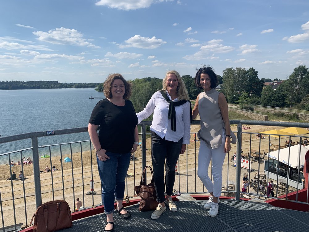 „Wir haben hier im Areal 'Offlumer See' derzeit sehr unterschiedliche Themen und verschiedenste Interessen auf dem politischen Tisch liegen, die ich gerne mit Birgit Neyer perspektivisch beleuchten möchte“, erklärt Kathrin Horre zu Beginn des Treffens auf den roten Trichtertürmen mit Aussicht über das Gelände rund um den See. Das Naherholungs- und Freizeitgebiet wird von vielen Menschen aus der Region genutzt und zieht als touristischer Hotspot auch Urlauber und andere Erholungssuchende an.
