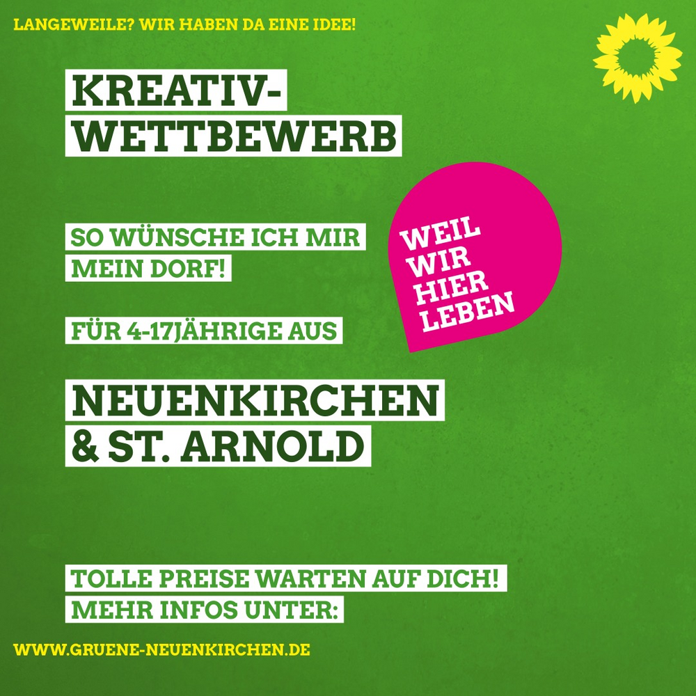 Wir GRÜNE Neuenkirchen möchten die Gelegenheit nutzen und Dich nach Deinen Ideen und Wünschen für Neuenkirchen und St. Arnold fragen. Wir wollen unseren Ort nämlich noch viel kinder-, jugend- und überhaupt menschenfreundlicher gestalten! Doch das WIE wollen wir nicht als Erwachsene alleine entscheiden, sondern mit Dir!