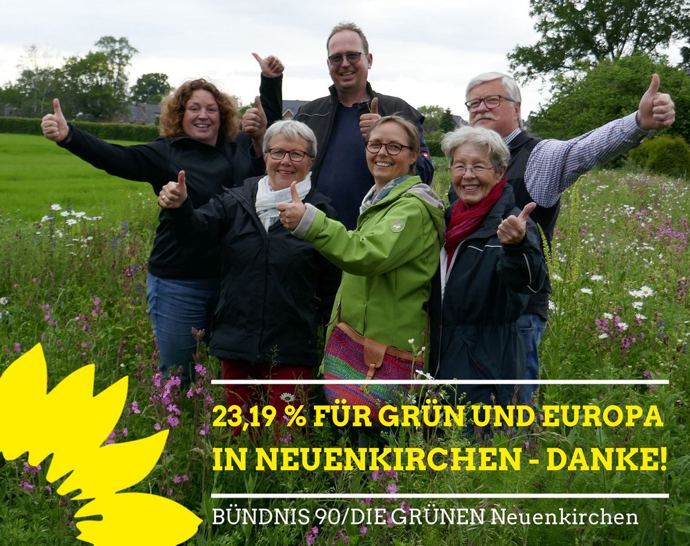 Davon haben wir nicht zu träumen gewagt! Seit Monaten freuen wir uns über das grandiose Engagement der jungen Menschen bei Fridays for Future. Klimaschutz ist das grüne Kernthema seit der Parteigründung von BÜNDNIS 90/DIE GRÜNEN und endlich ist es in der breiten Debatte angekommen. Rezo hat mit seinem Video zusätzlich viele Jungwähler*innen mobilisiert, ihre Stimme für Europa abzugeben. Und was die U18-Wahl bereits angekündigt hat, zeigt das aktuelle Wahlergebnis ebenfalls: die jungen Menschen, die, um deren Zukunft es geht, würden GRÜN wählen! Und das auch im bisher CDU-dominierten Kreis Steinfurt. Und ganz besonders freuen wir uns über das fulminante Ergebnis für uns GRÜNE hier in Neuenkirchen.